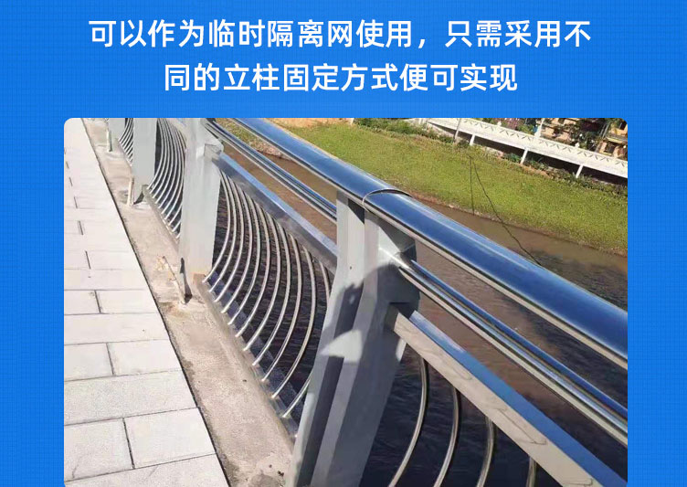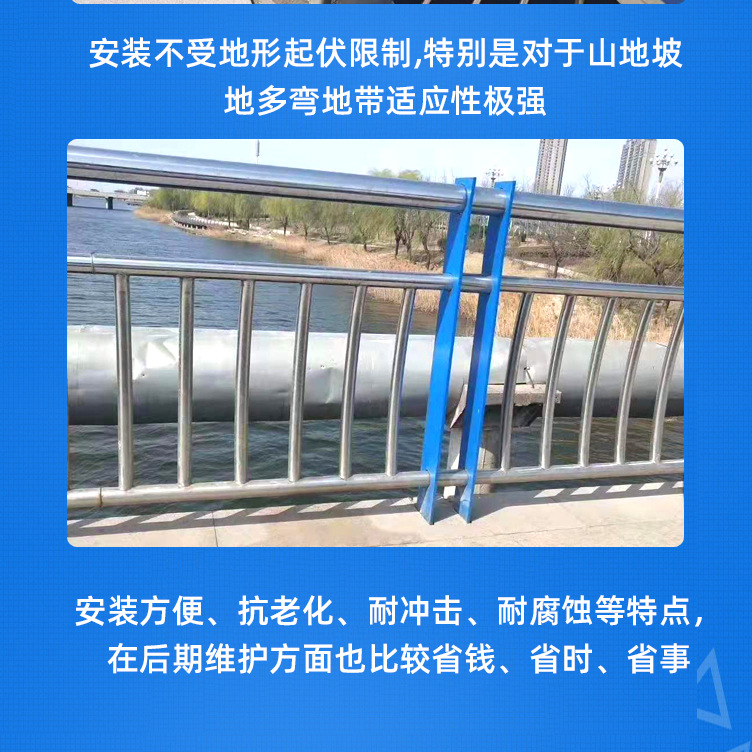 河道護欄不僅具有不銹鋼管的豪華美觀和現代氣息,又具有普通碳鋼管的堅韌性。是價昂不銹鋼管的替代品,它與鋼板立柱配合,做成城市、道橋等的安全欄桿。 不僅牢固、大方,且可造型各異,給都市別一種亮麗風景線。